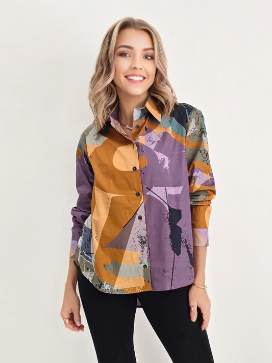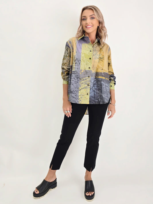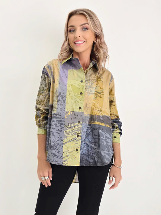 Lemon Grass- Print Blocked Blouse/Lyons Blue