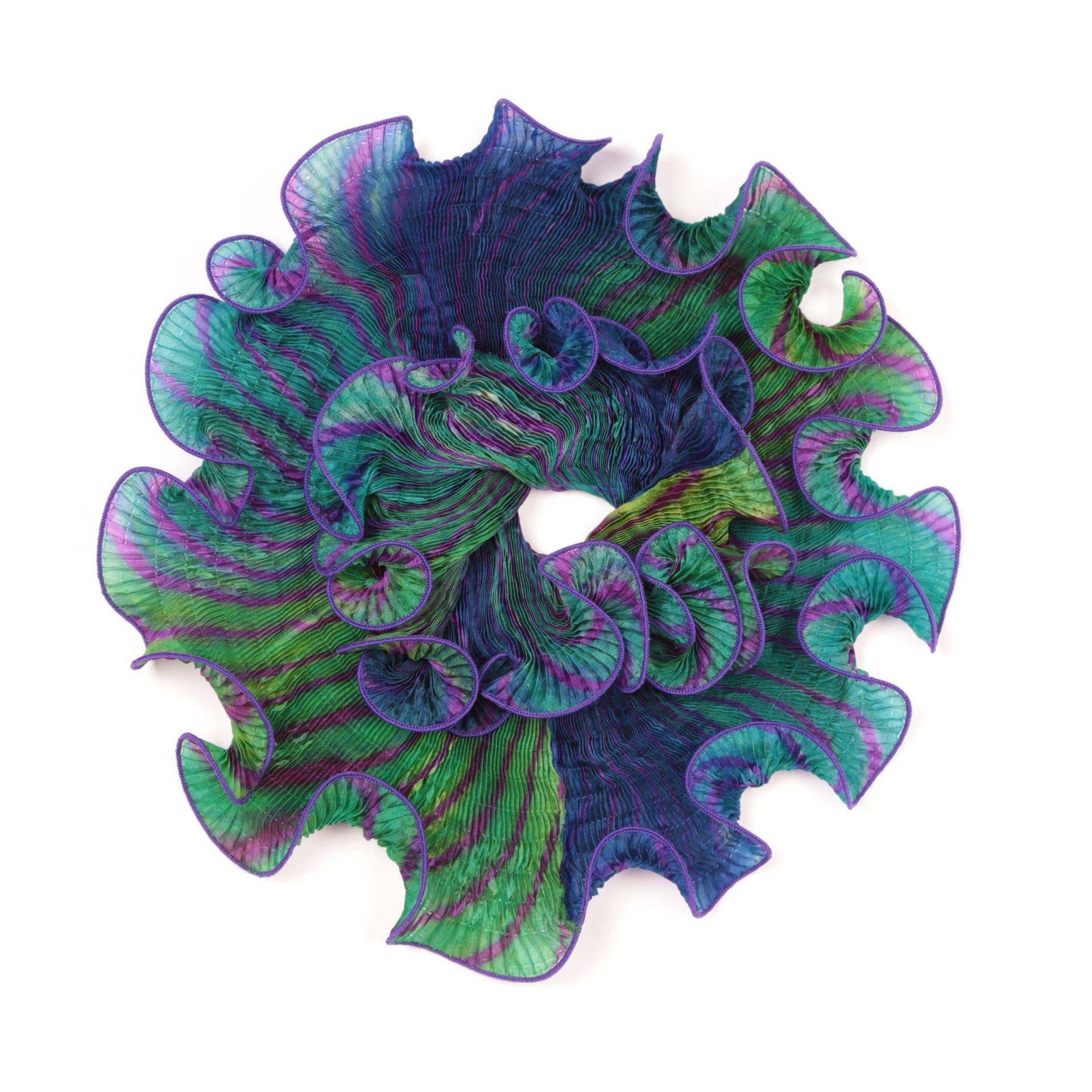Cathayana - Hand-Dyed & Pleated Silk Infinity Scarf | Purple & Blue