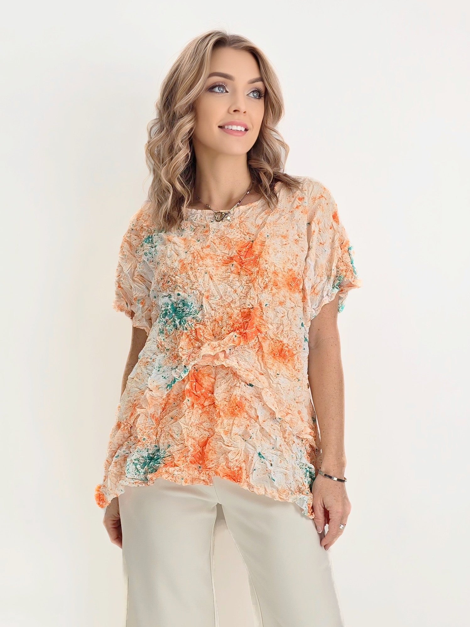 Gorgeously shown in our Fiji colorway, the Cressida Top brings a playful touch to an ordinary garment with its pleat details and asymmetric hem. Still capable to keep you in all day comfort with a rounded neckline and dolman short sleeves in a boxy fit. Curated in our crinkle embossed woven fabric that offers a unique texture, extremely durable for travel and keeping you effortlessly styled.