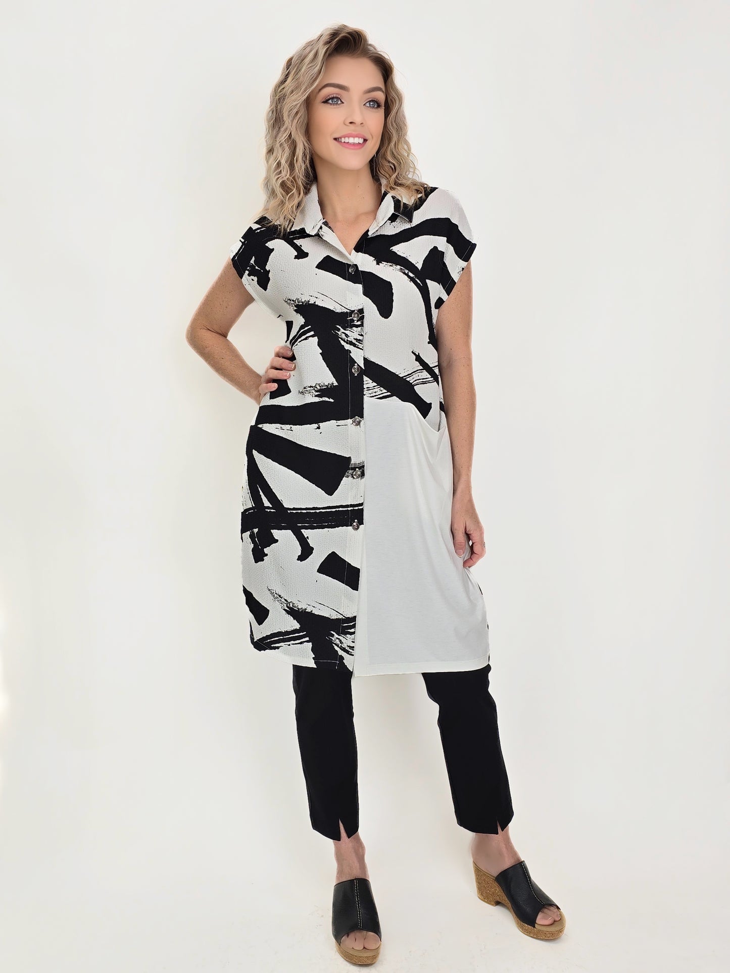 Sophistication meets playfulness in the Lilac Shirt Dress. This short-sleeved garment features a button-up collar and a relaxed lantern silhouette for a truly unique look. Crafted from our printed crepe fabric with a solid bamboo contrast at the inseam pocket, it’s the perfect blend of structure and whimsy.