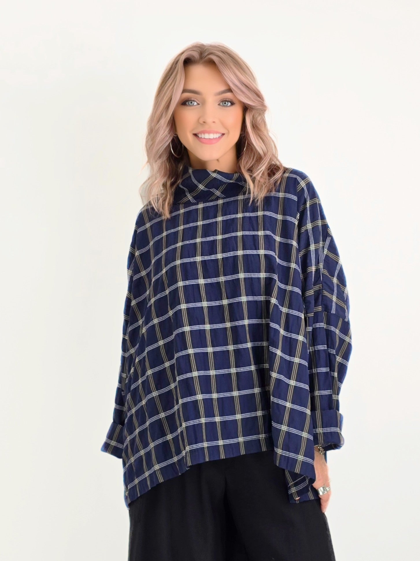 Dress to Kill/ Mock Boxy Cowl Top/Navy-Yellow
