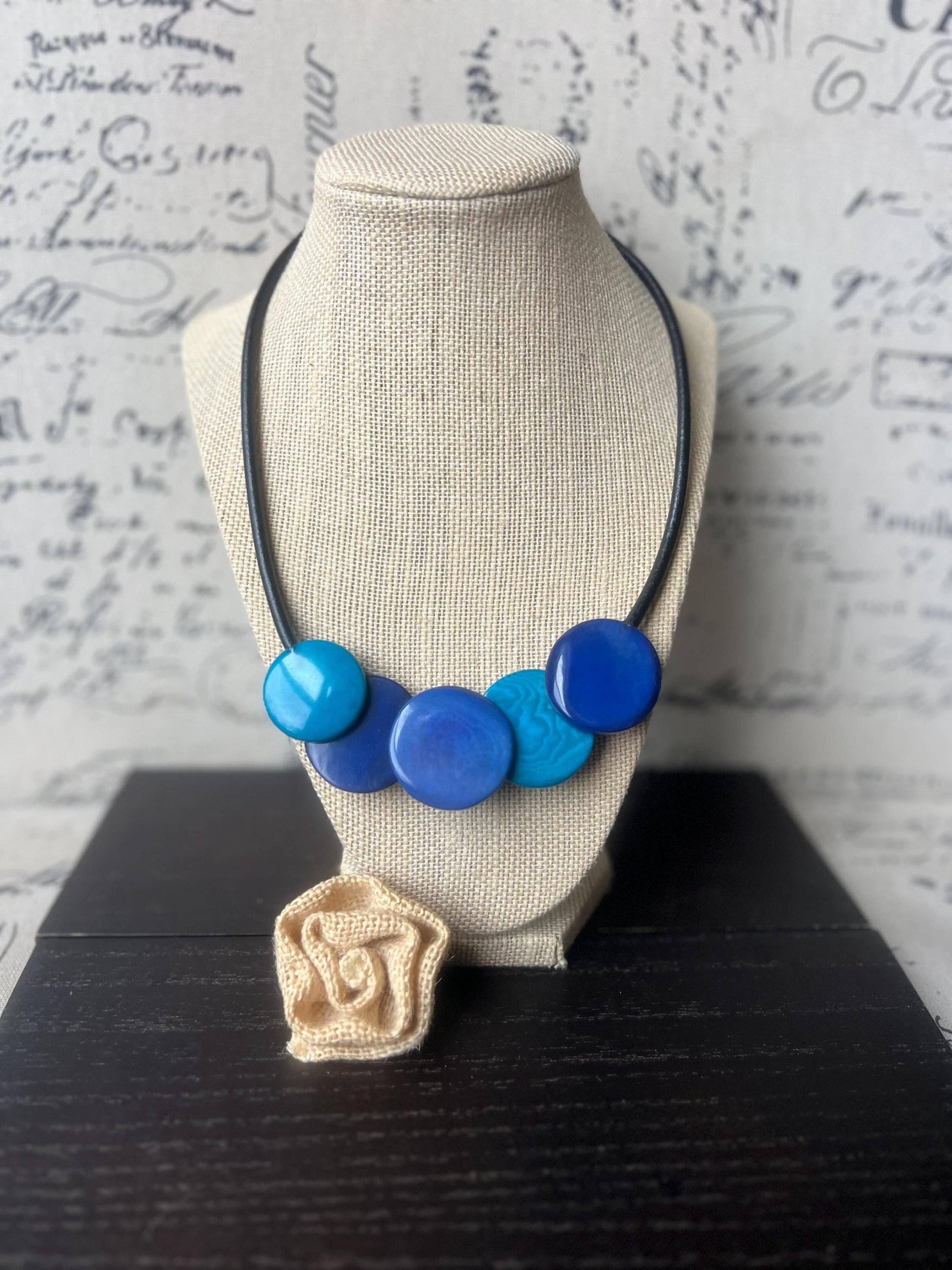 Add a vibrant touch to your jewelry collection with this beautifully handcrafted Tagua necklace from Ecuador. Made from sustainably sourced Tagua nuts—often called vegetable ivory—this eco-friendly piece showcases smooth, rounded beads in rich, tonal shades of blue. Lightweight and effortlessly comfortable, it fastens with a secure magnetic clasp for easy, everyday wear.