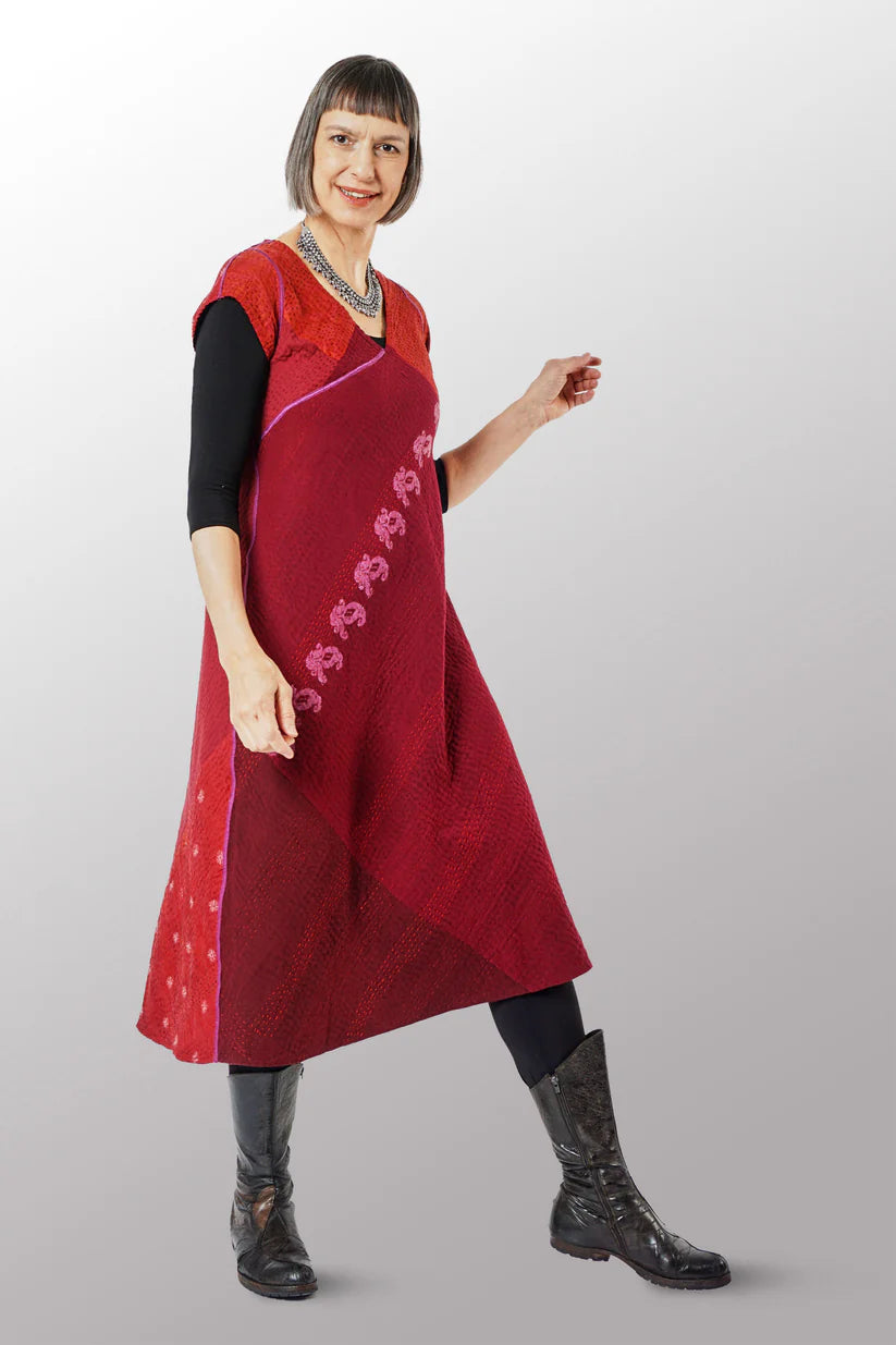 Mieko Mintz- JAIPUR PATCH KANTHA CAP SLV. SEMI FLARE DRESS