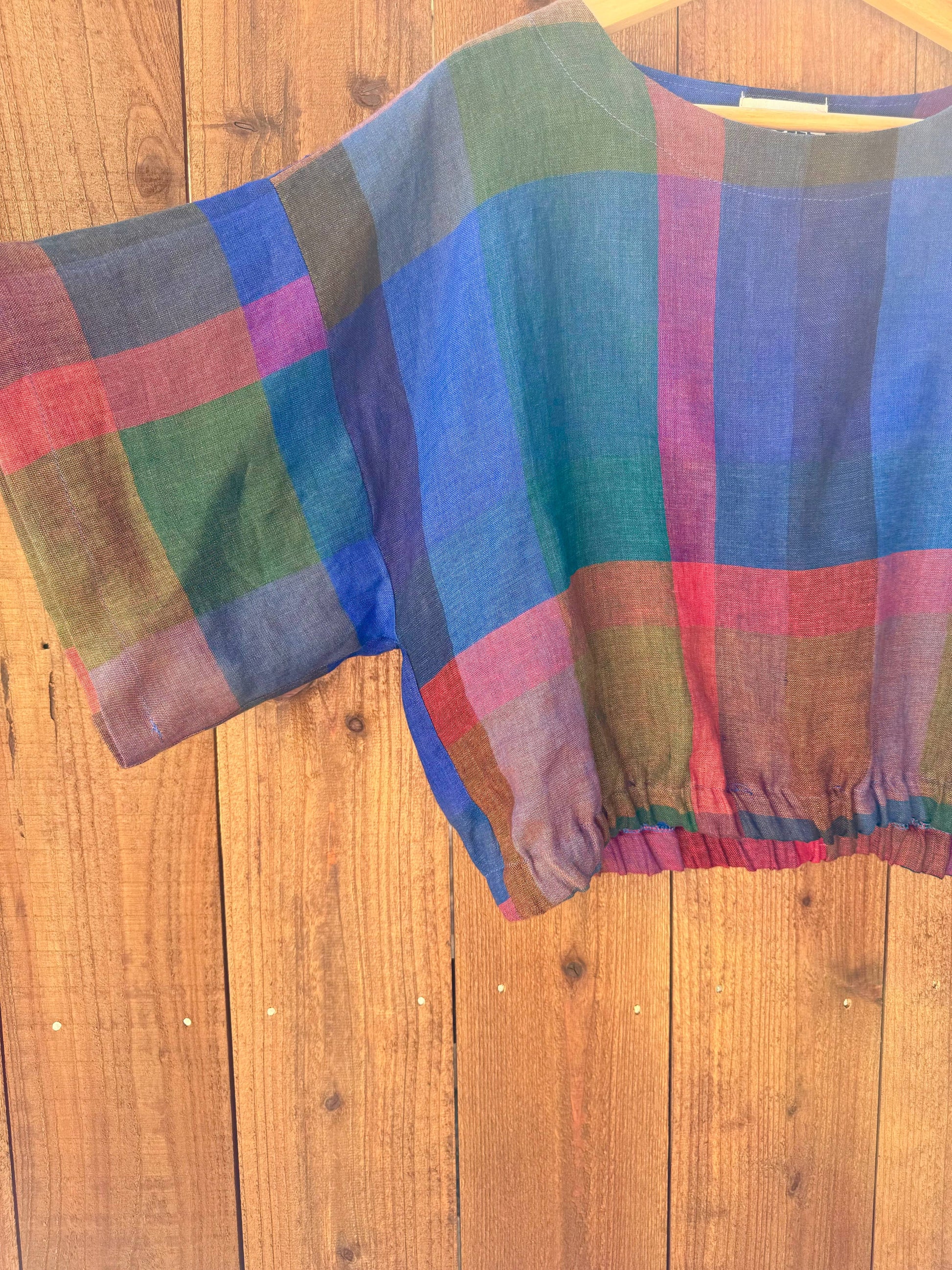 The artful plaid pattern blends rich jewel tones for a sophisticated yet relaxed look