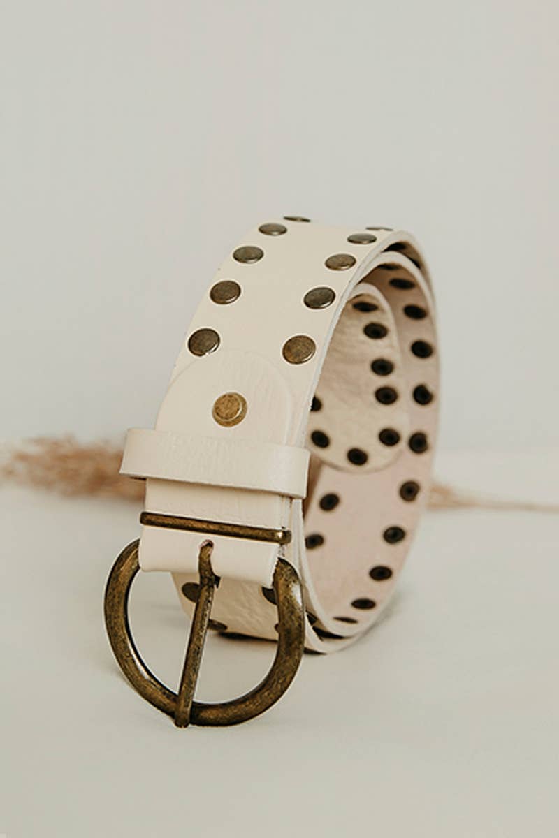 Lula Natura - White Leather Belt Cirius Studs w Wide Coins