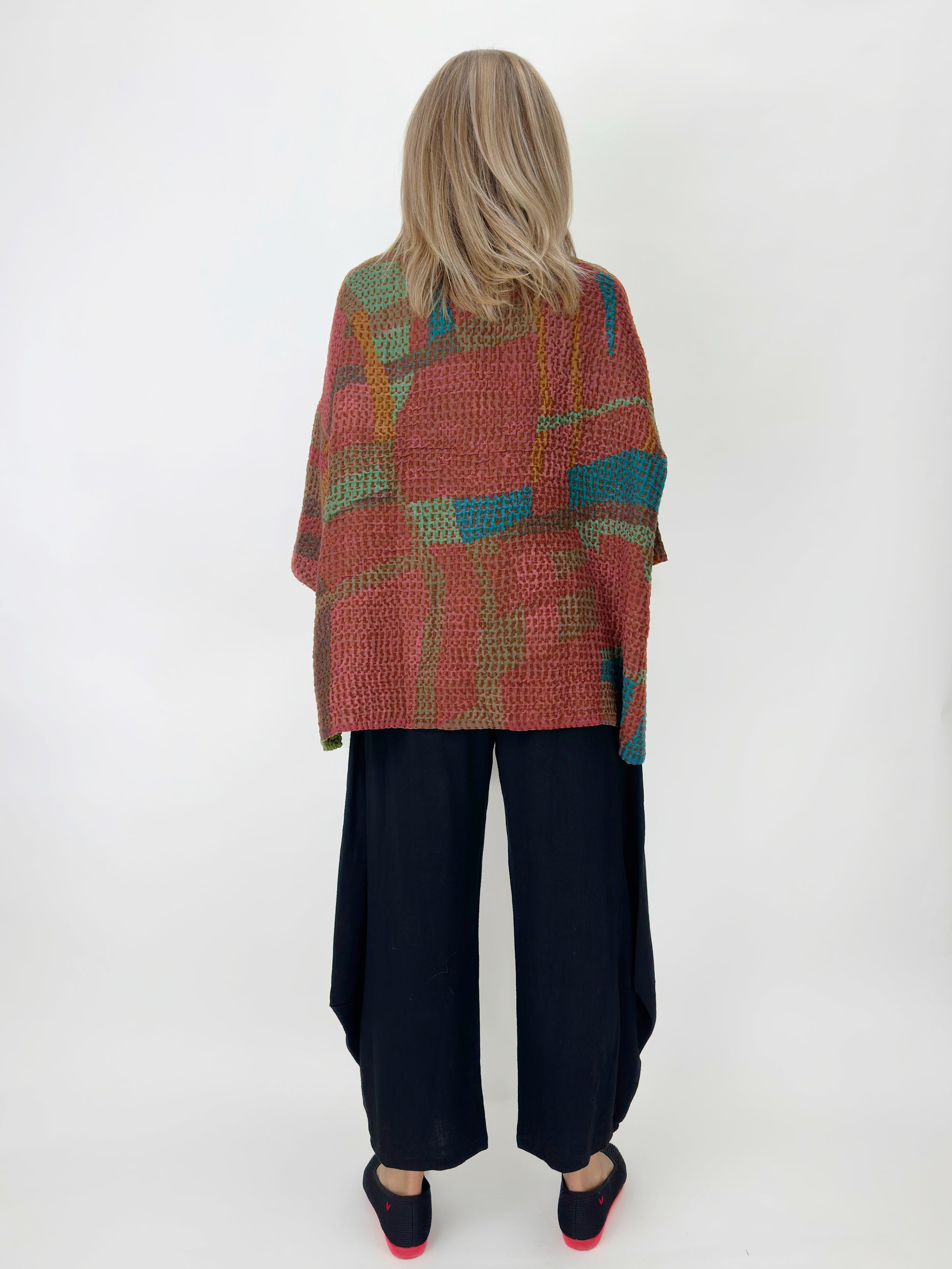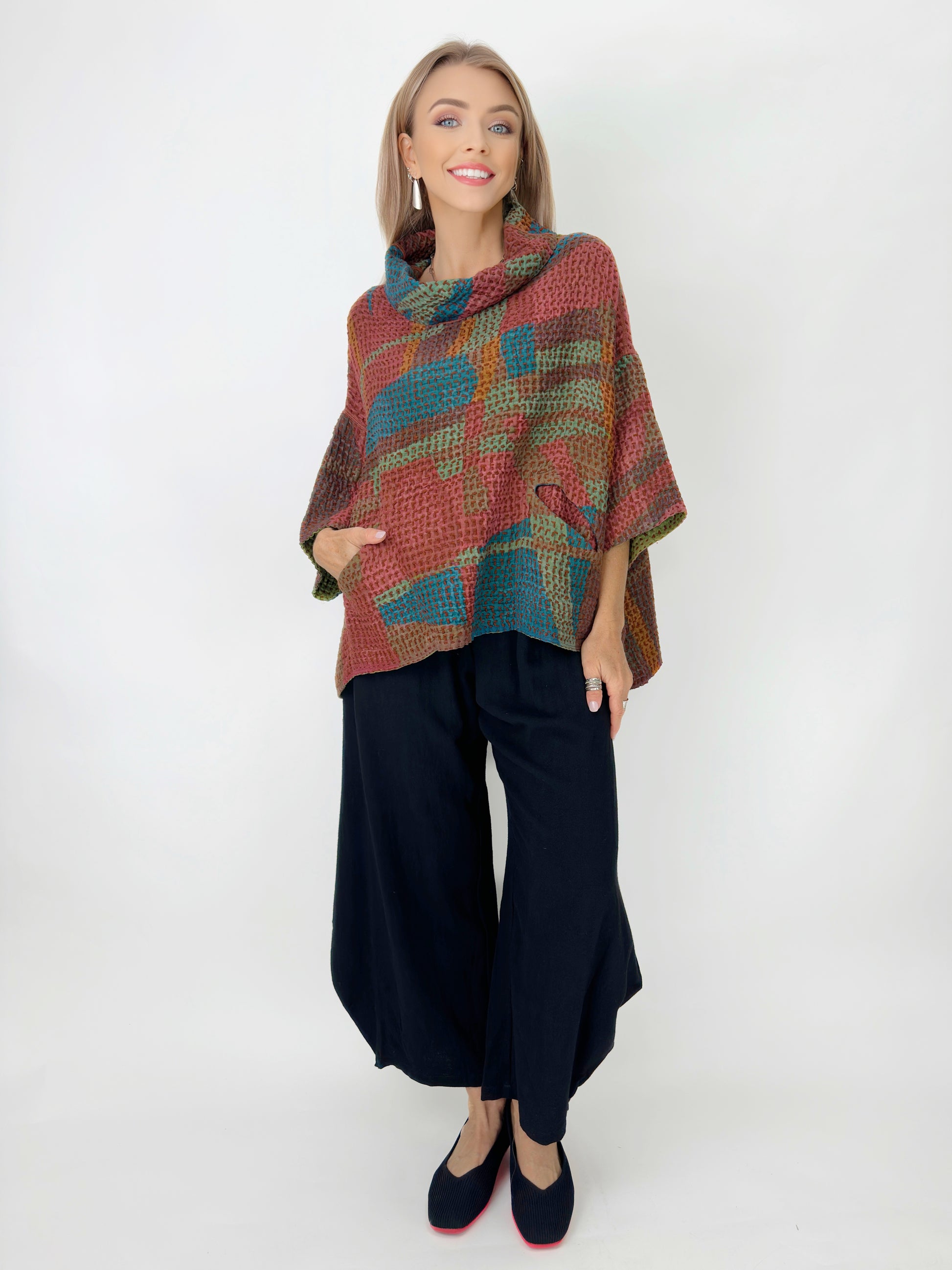Mieko Mintz- Abstract Waffle Kantha Cowl Neck Poncho