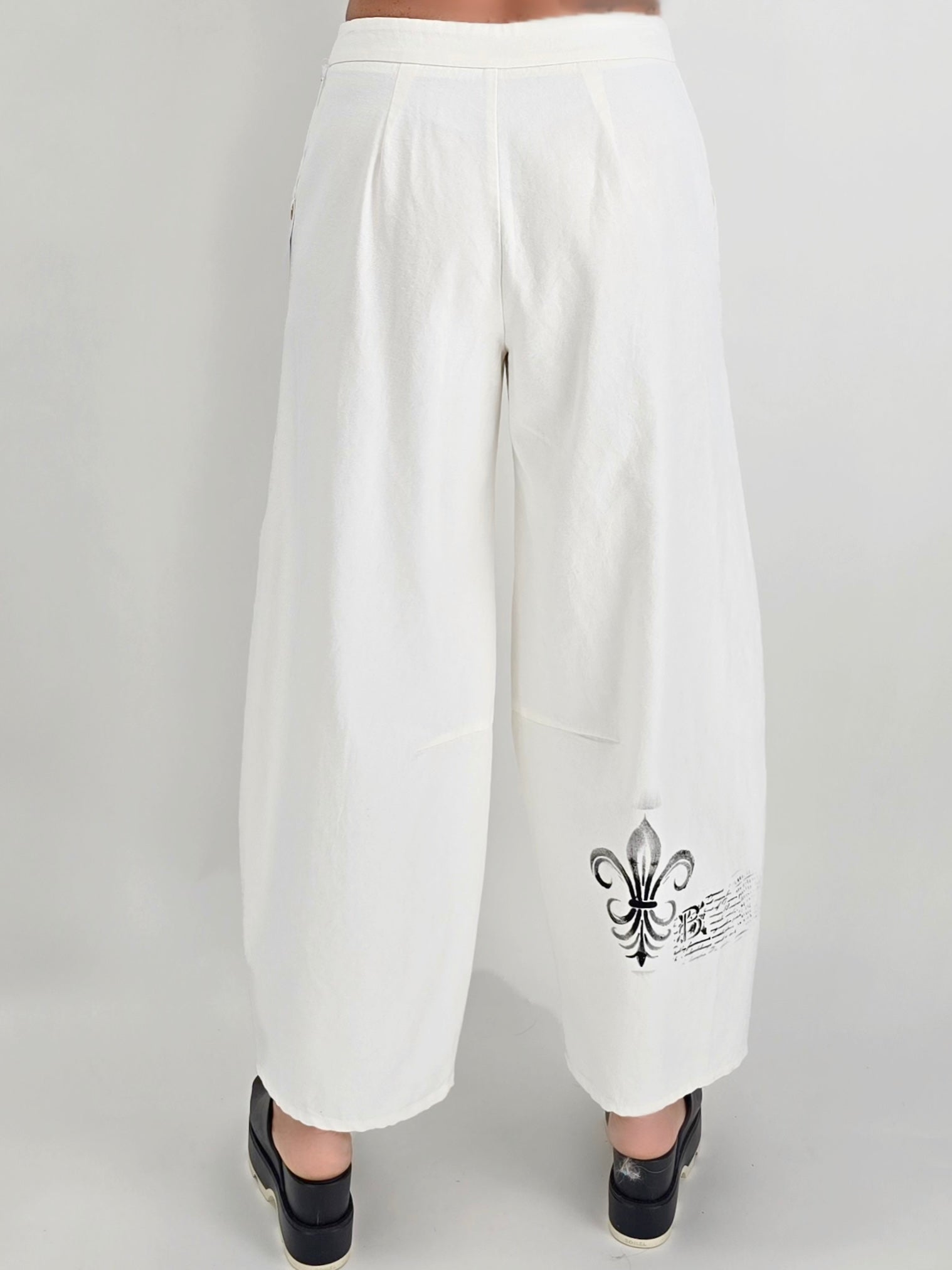 Narenee Designs- Hand-Painted Linen Barrel Pants