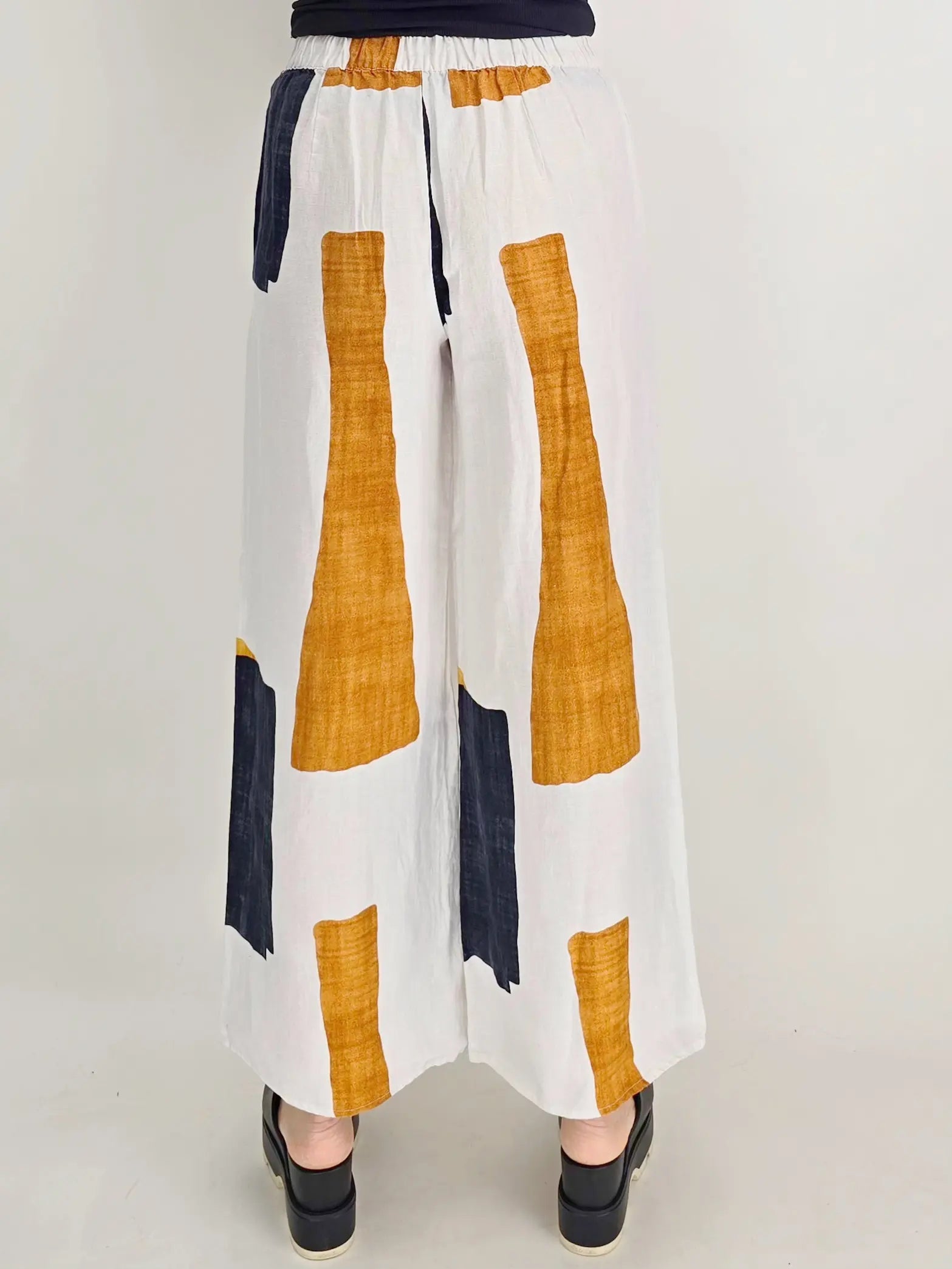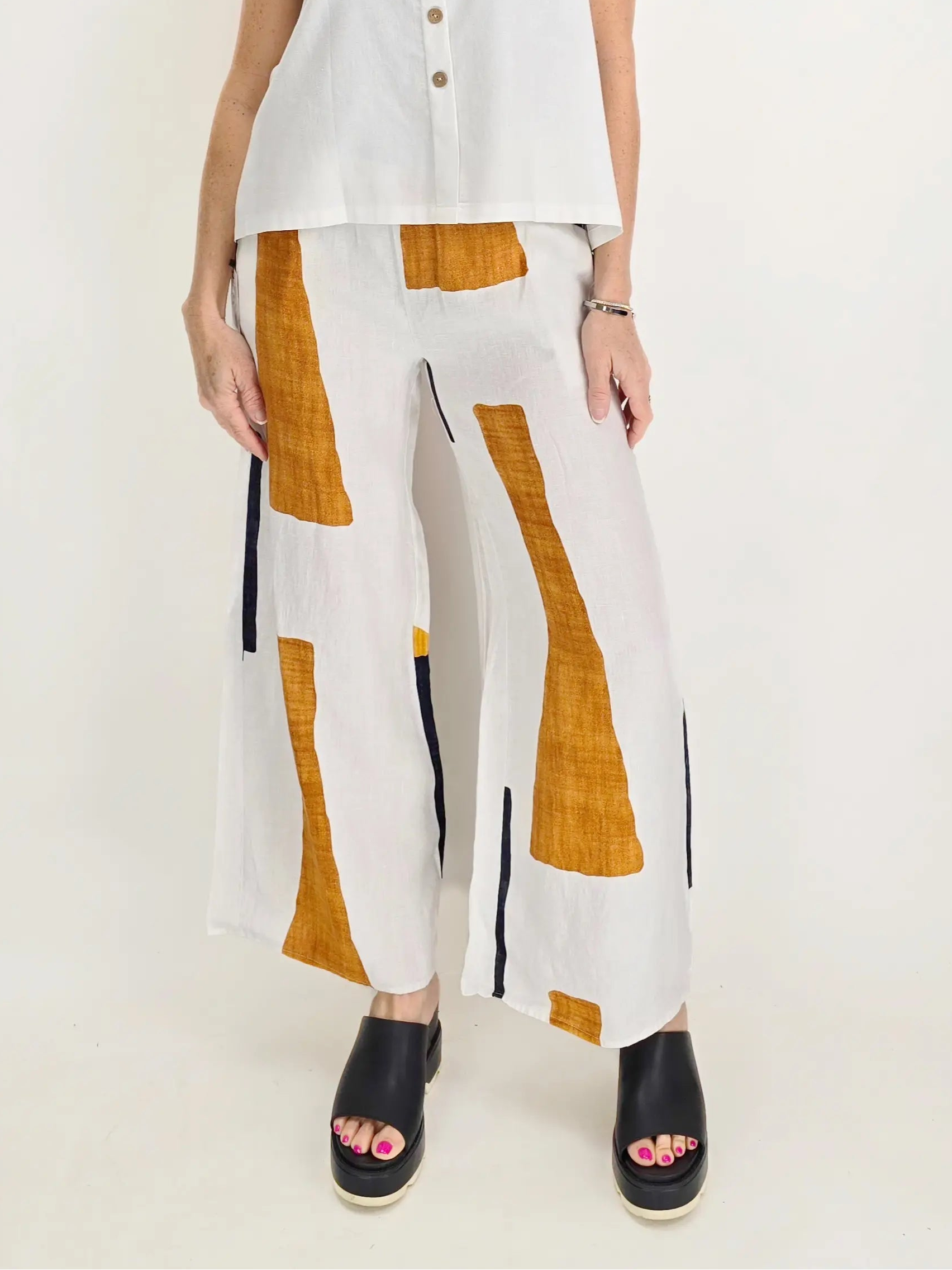Easy, breezy, and full of personality. These pull-on linen flood pants feature bold colorblocking, a relaxed wide leg, and an effortless fit that keeps you cool and comfortable all day long. Artful, lightweight, and made to move with you.