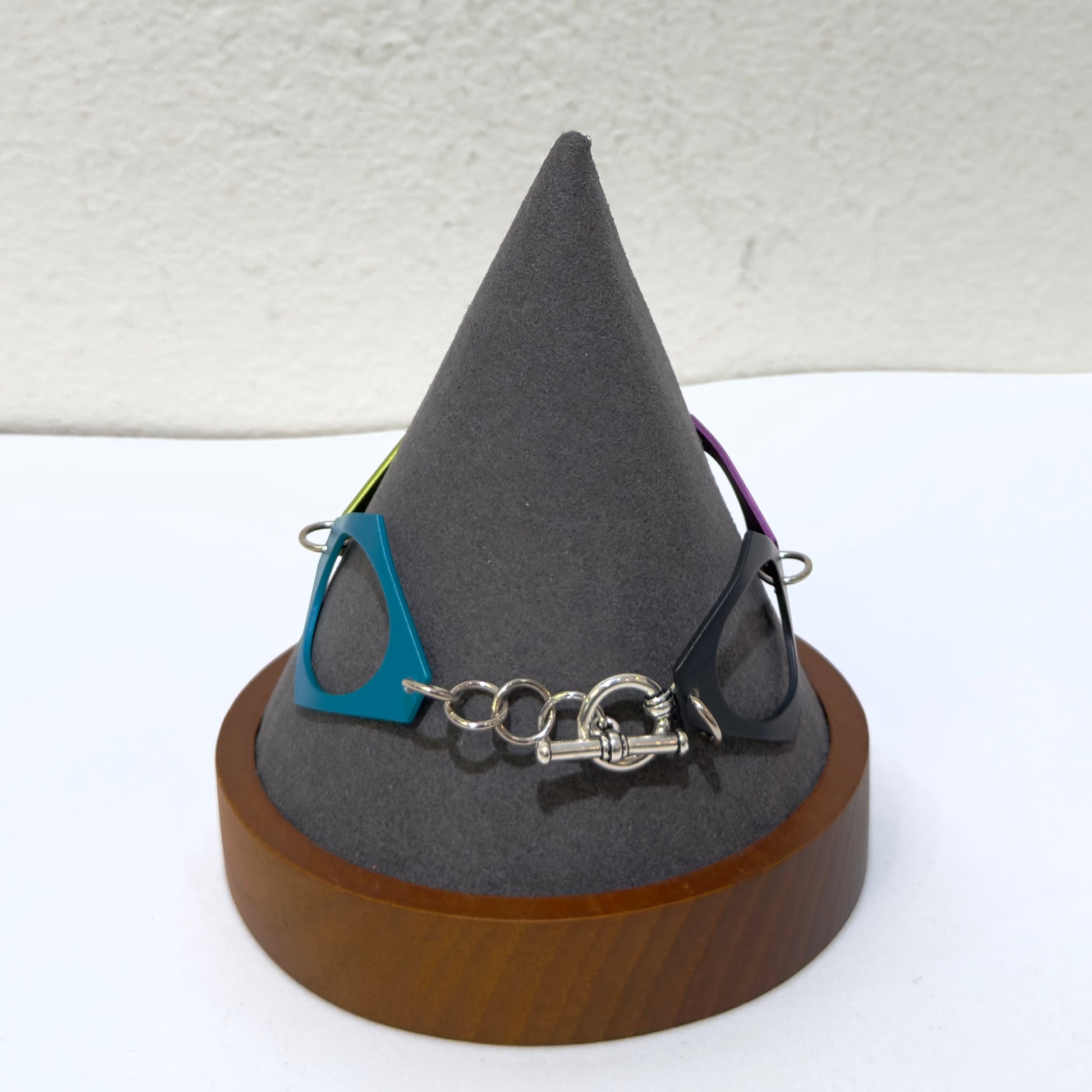 4 x 1 1/2" x 1 1/8" Diamond with oval punch out. Chrome plated jump rings.