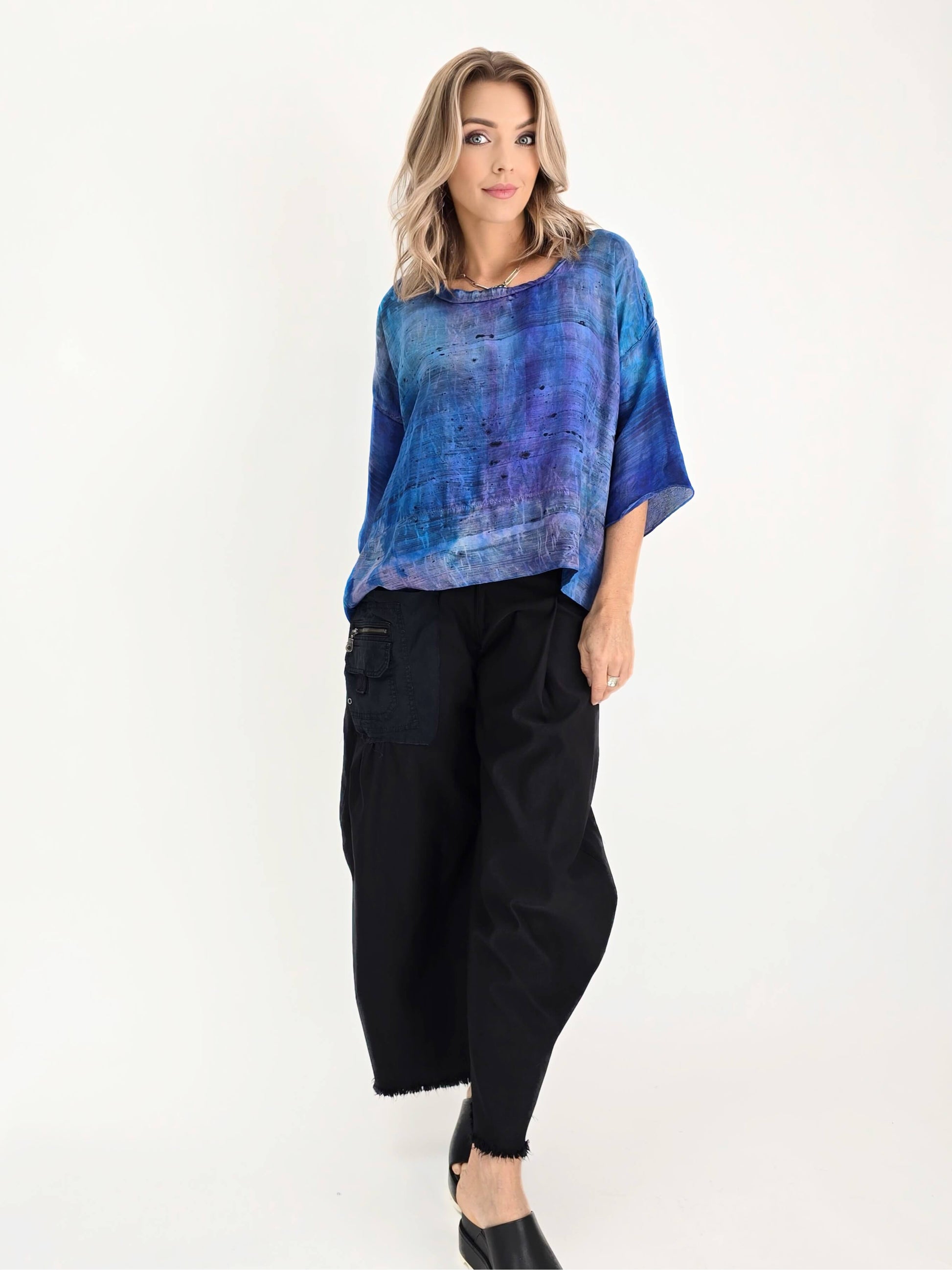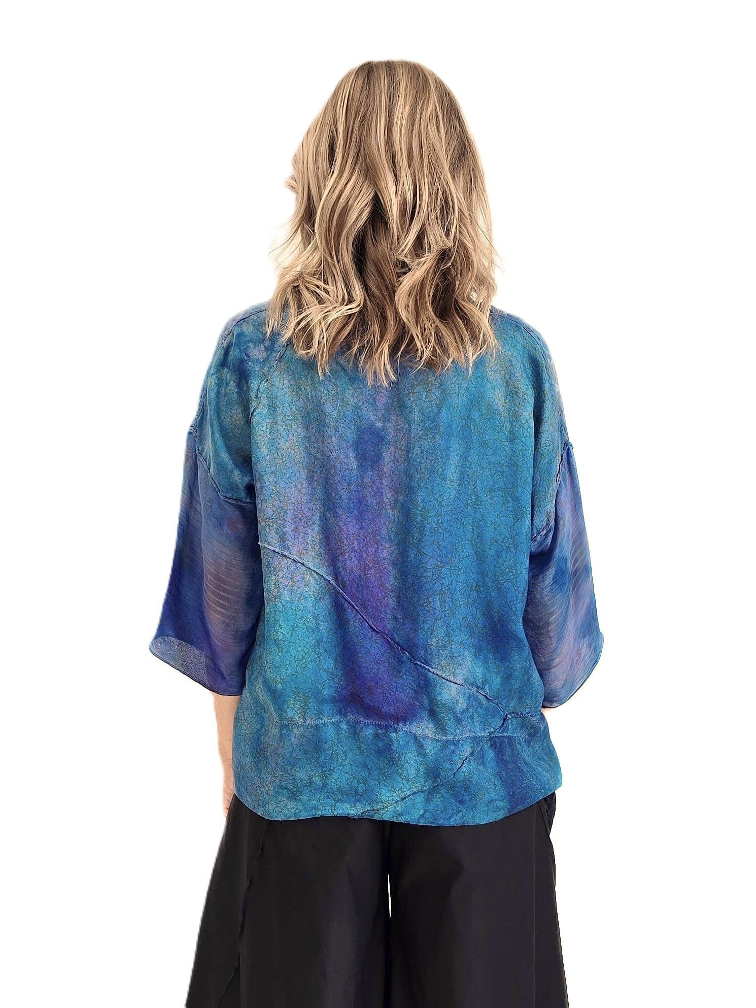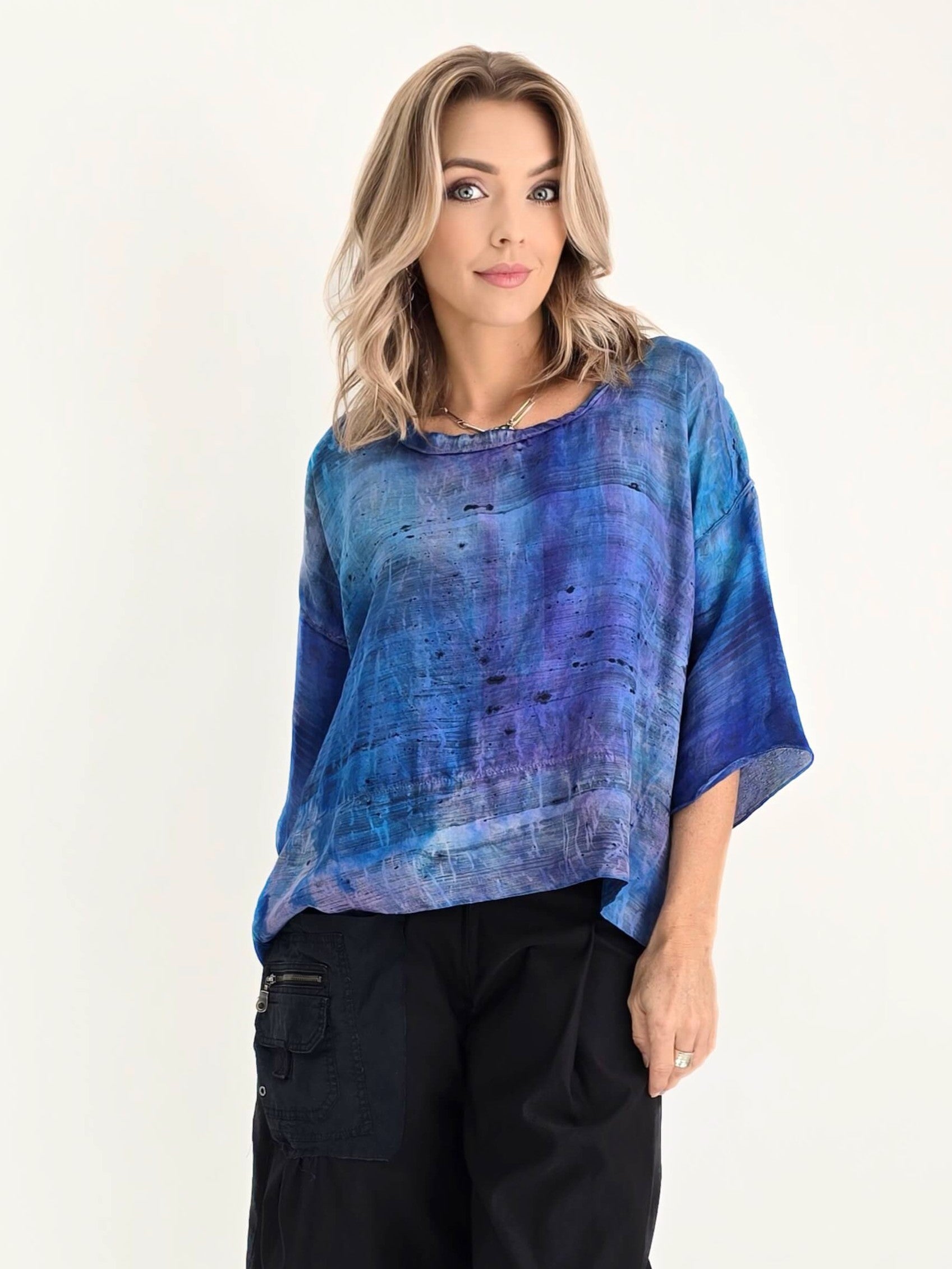 Purple rain on the window hand-painted Silk top/ Size Small/Medium
