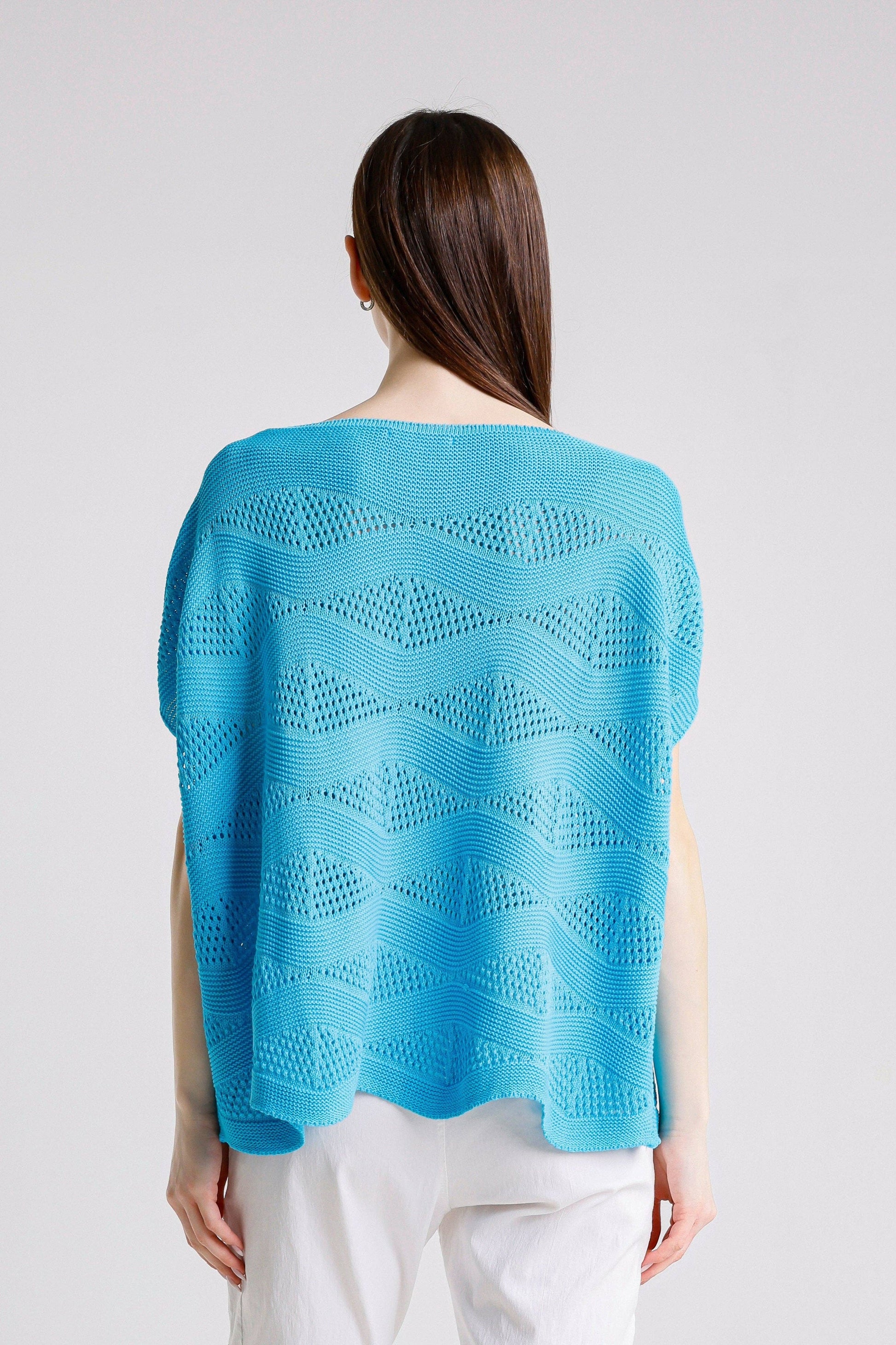 TINA Stephens - Patsy SS Wave Knit Sweater/ Turq